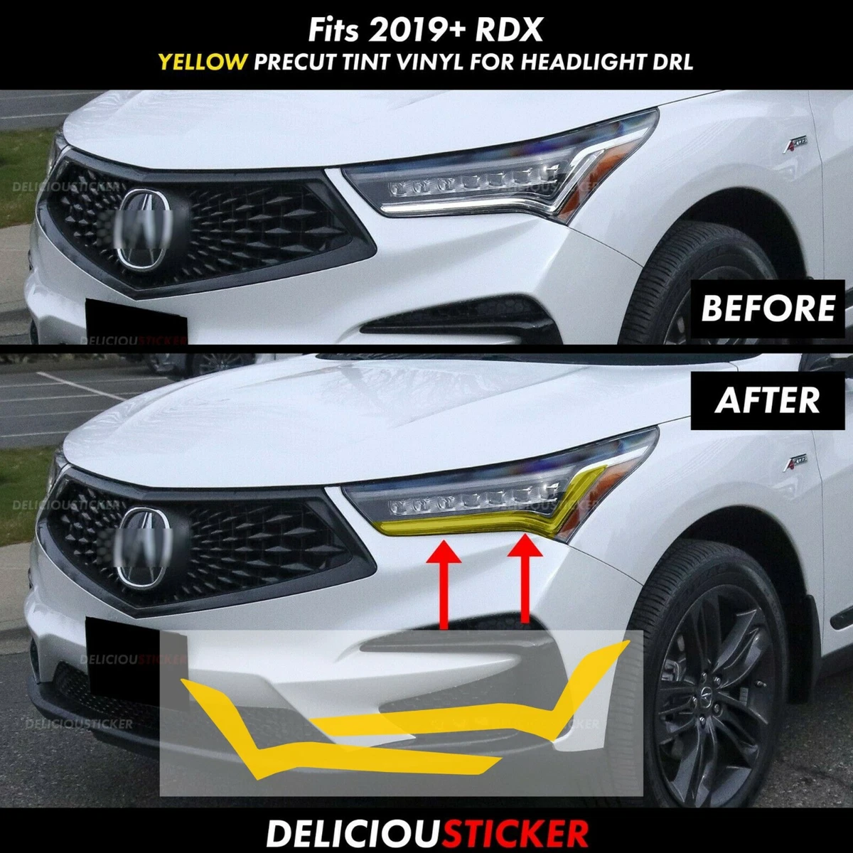 Fits 2019 2024 Acura RDX YELLOW Headlight Front DRL Overlays Tint